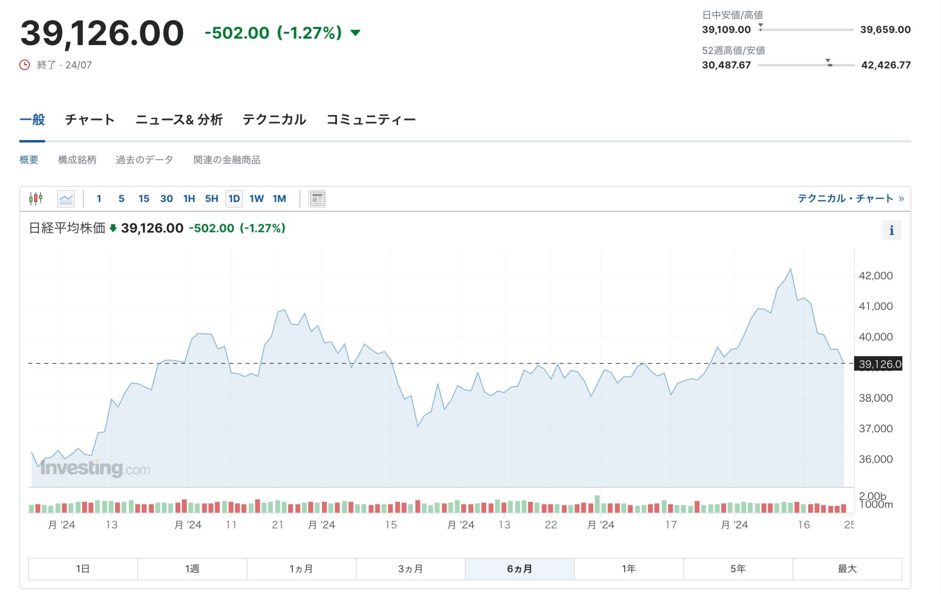 ちなみに、日経平均株価もすごいことになっていて7月11日に42,200円だったものが本日日経先物市場(最新の市場データ)で38,300円になっています。これは9%の下落、ということになります。これも、なかなかの暴落っぷりです。
